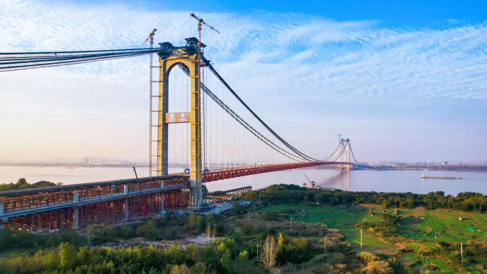 11月22日,湖北燕矶长江大桥顺利合龙,万里长江再添一道“飞虹”。