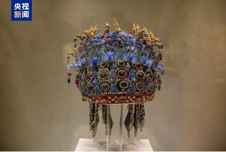 国家博物馆内展出的孝端皇后凤冠实物 图源:“央视新闻”微信公众号